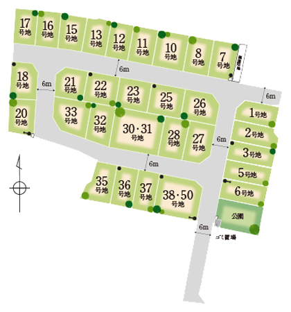 | 建築条件付き宅地 | 今回販売区画数/5区画 宅地価格/670万円〜727万円 宅地面積/135.00㎡〜140.07㎡ |